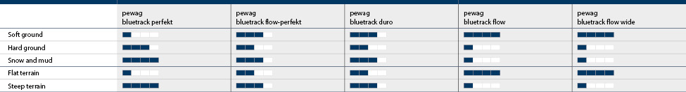 pewag bluetrack flow — гусеницы для лесозаготовительной техники для использования в простых условиях и на чувствительном к воздействию грунте. Гусеницы сконструированы таким образом, чтобы обеспечить оптимальное сцепление и максимальную защиту шин и поверхности почвы. Широкая опорная поверхность гусениц не дает машинам проваливаться в грунт, прежде всего при движении на мягком покрытии.