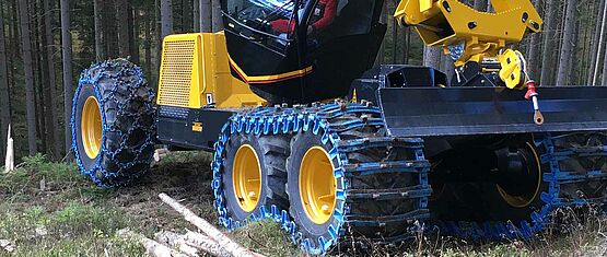 pewag поставляет комплексные решения и предлагает гусеницы и цепи противоскольжения для лесозаготовительной техники, а также системы цепей для трелевки и транспортировки крупногабаритных грузов в лесу.